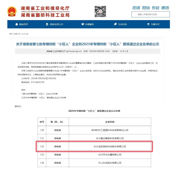 Em outubro de 2025, o Ministério da Indústria e Tecnologia da Informação concluiu o processo de revisão das empresas "Pequenos Gigantes" de 2025 sob a classificação "Especializada, Refinada, Diferencial e Inovadora" e publicou oficialmente a lista. Kingmach Measurement & Monitoring Technology Co., Ltd passou com sucesso na revisão rigorosa e recuperou esta honra de nível nacional, graças à sua persistente capacidade de inovação, força técnica profissional e desempenho estável do mercado.